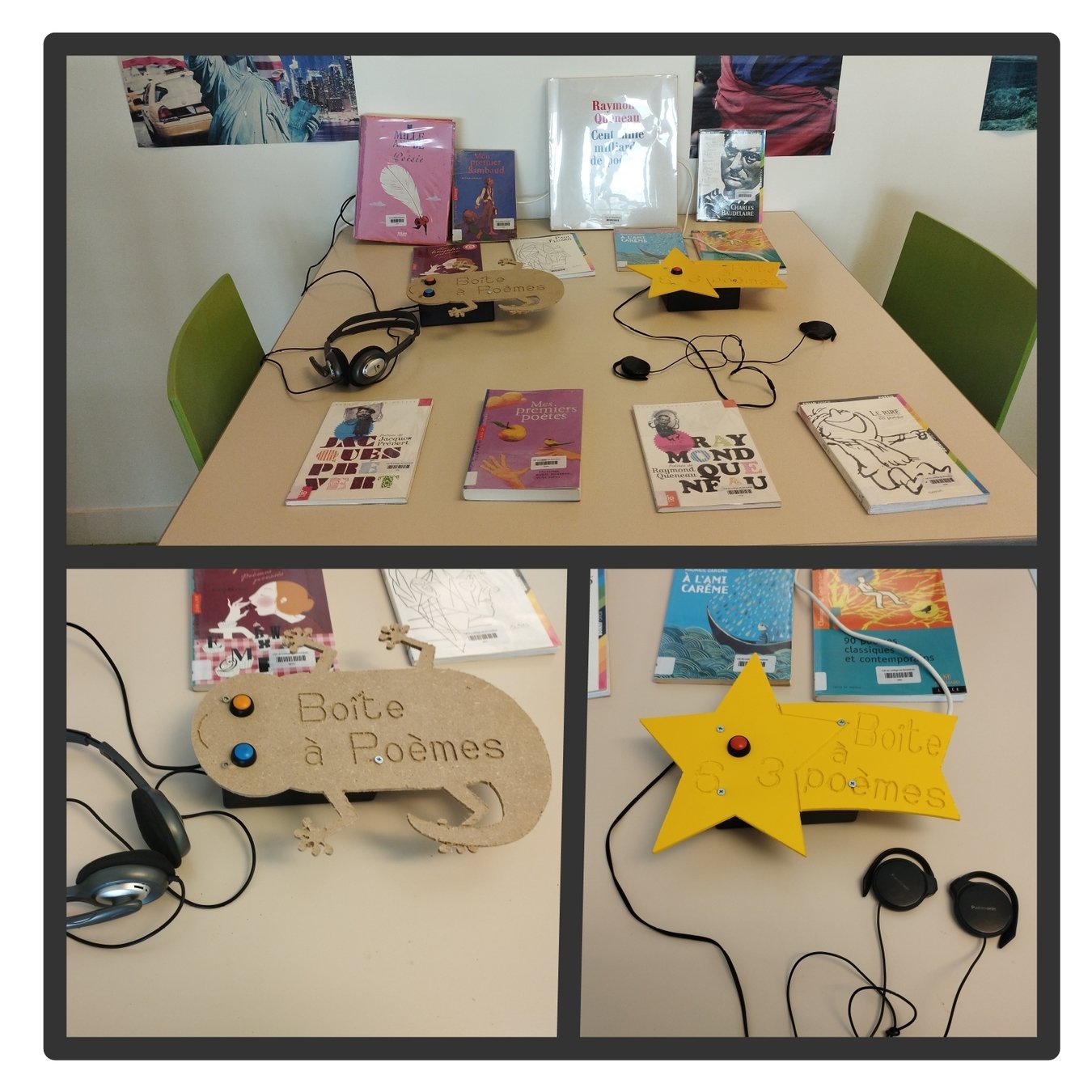 Les élèves de 6è3 ont écrit et enregistré des poèmes sur le thème des animaux laids avec Mme Peckre, ils ont ensuite dessiné et programmé la boite qui permet de les écouter avec M. Faucheux.