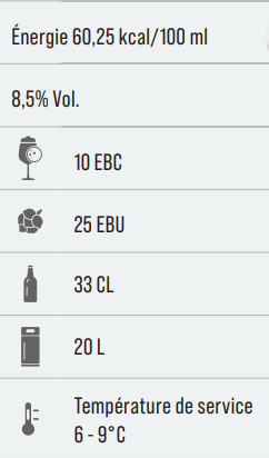 La séductrice! Un régal pour les yeux, un plaisir pour les papilles. Blonde et brutale, elle est la première bière blonde de notre série. Corsée, avec une belle perle, surmontée par une tête riche...