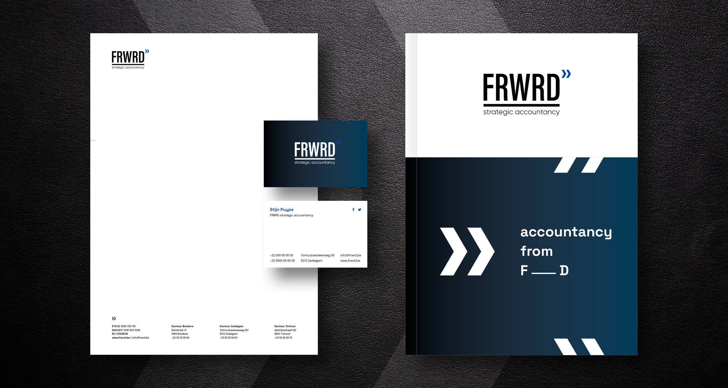 Boekhoudkantoren CPJ Accountants en Fibam bundelden hun krachten en vormen nu samen FRWRD strategic accountancy. FRWRD staat voor vooruitgang. comma, brand strategists maakte die vooruitgang samen met hen werkelijkheid via een volledige rebranding, from F – D.