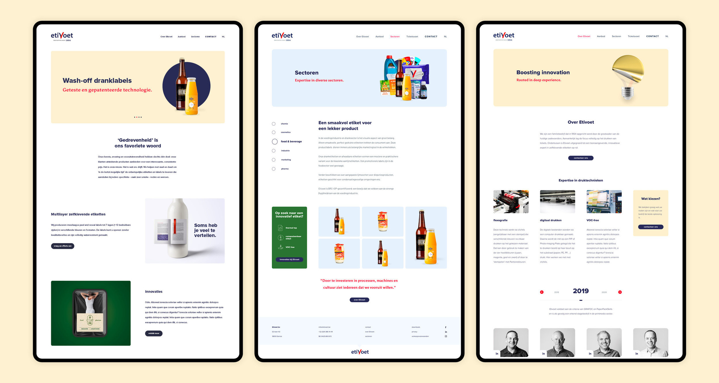 Etivoet staat bekend als toonaangevende, innovatieve expert in zelfklevende etiketten op rol. Het familiebedrijf bouwt al sinds 1954 een sterke knowhow op binnen de sector. Ook het aanbod in product labels breidde doorheen de jaren sterk uit. In 2017 stapte Etivoet naar comma, brand strategists om hun positie in de markt nog te versterken en het ruime aanbod duidelijker te communiceren. Sinds dat moment blijft comma, brand strategists Etivoet ondersteunen in hun marketing- en communicatiestrategie.