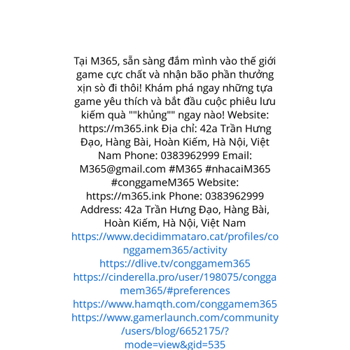 Website: https://m365.ink Tại M365, sẵn sàng đắm mình vào thế giới game cực chất và nhận bão phần thưởng xịn sò đi thôi! Khám phá ngay những tựa game yêu thích và bắt đầu cuộc phiêu lưu kiếm quà ""khủng"" ngay nào! Website: https://m365.ink Địa chỉ: