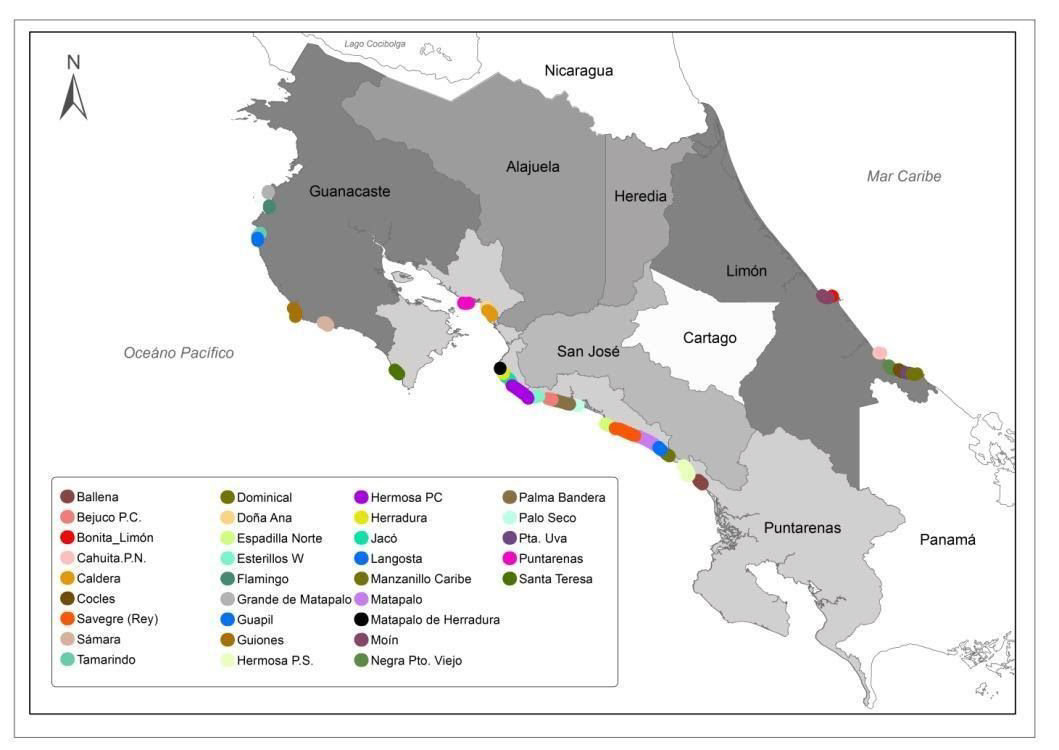 Figure 1: Political Map of Costa Rica showing beaches with the highest drowning rates (Segura et al., 2020).