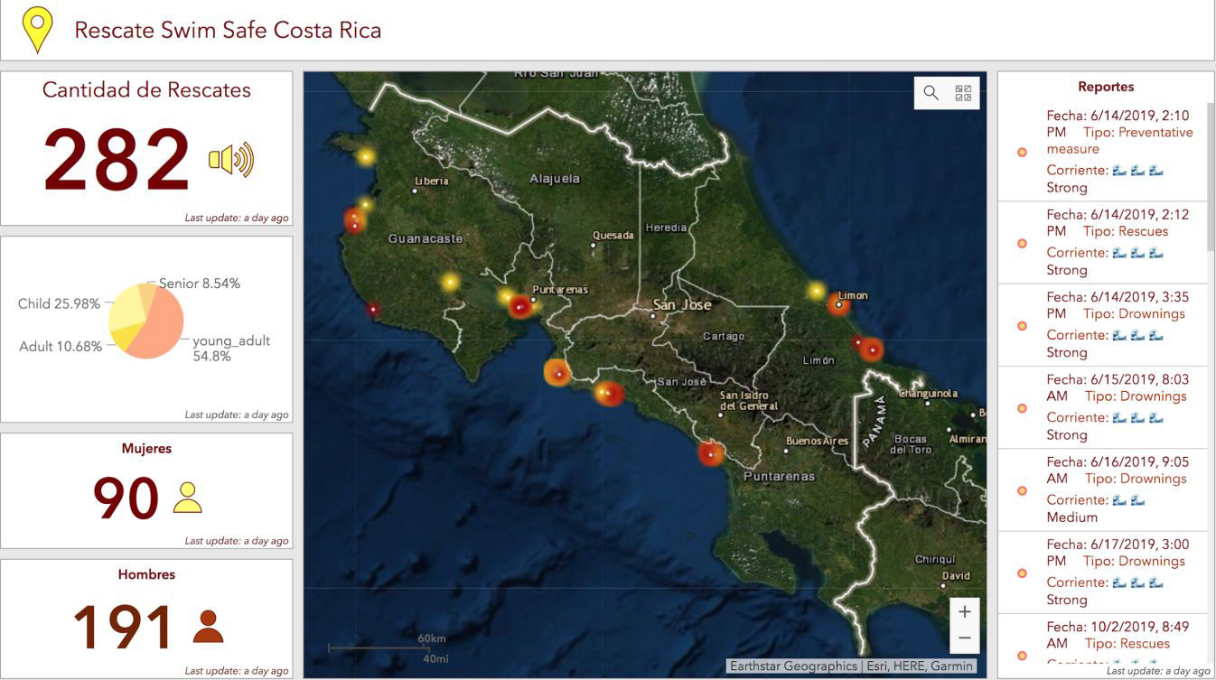 Figure 9. ArcGIs SWIM SAFE Costa Rica Drowning Prevention App