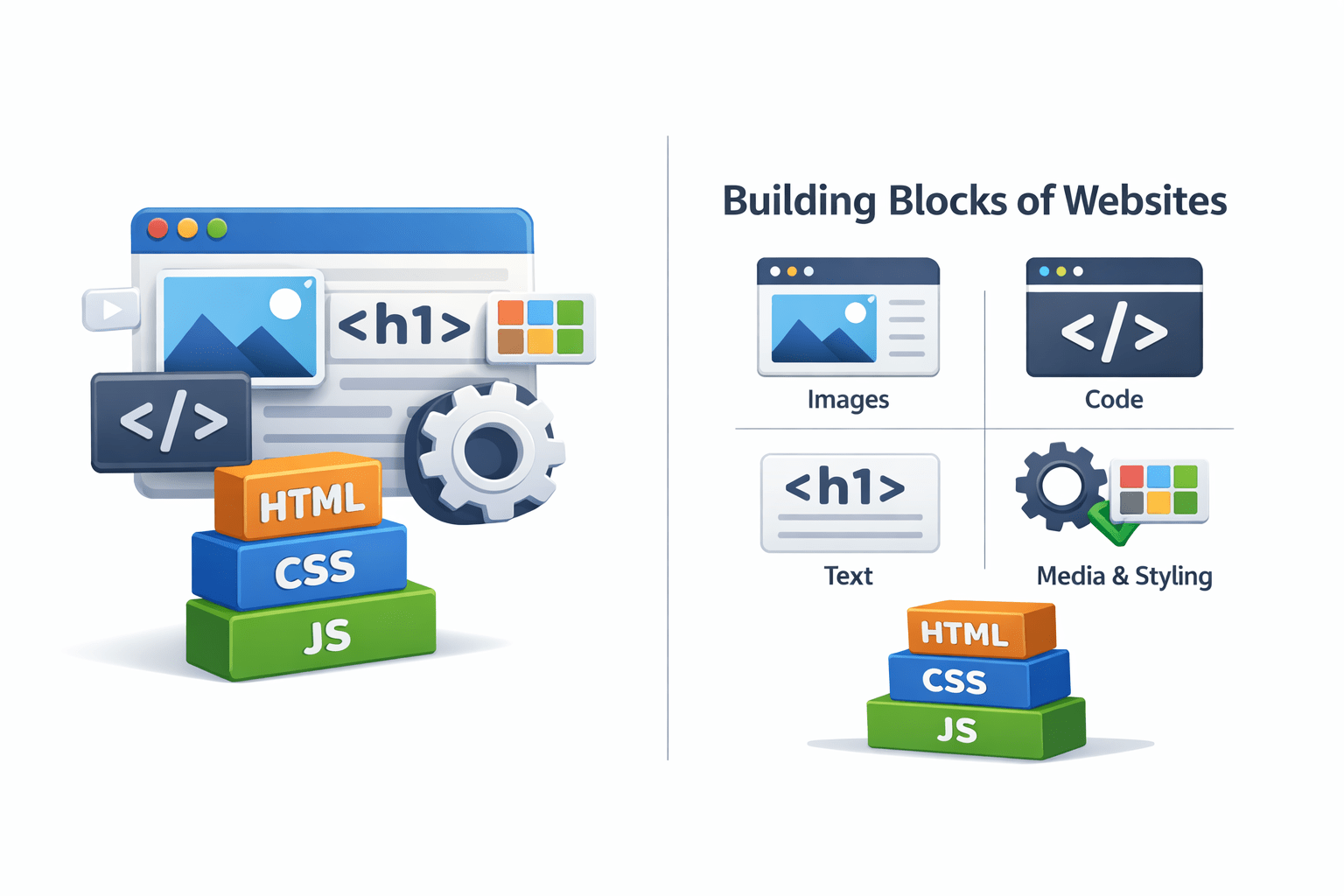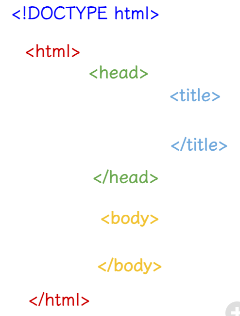 Basic HTML structure: <html>, <head>, <title>, <body>