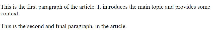<p>This is the second and final paragraph, in the article.</p>