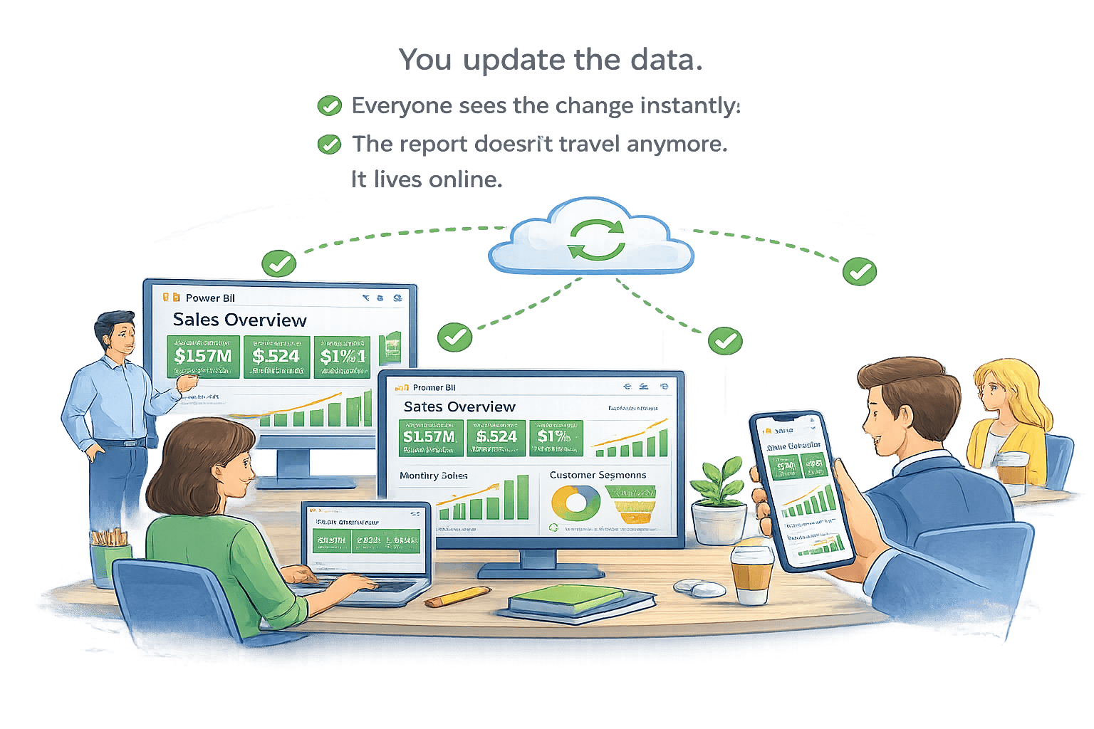 You update the data. Everyone sees the change instantly.