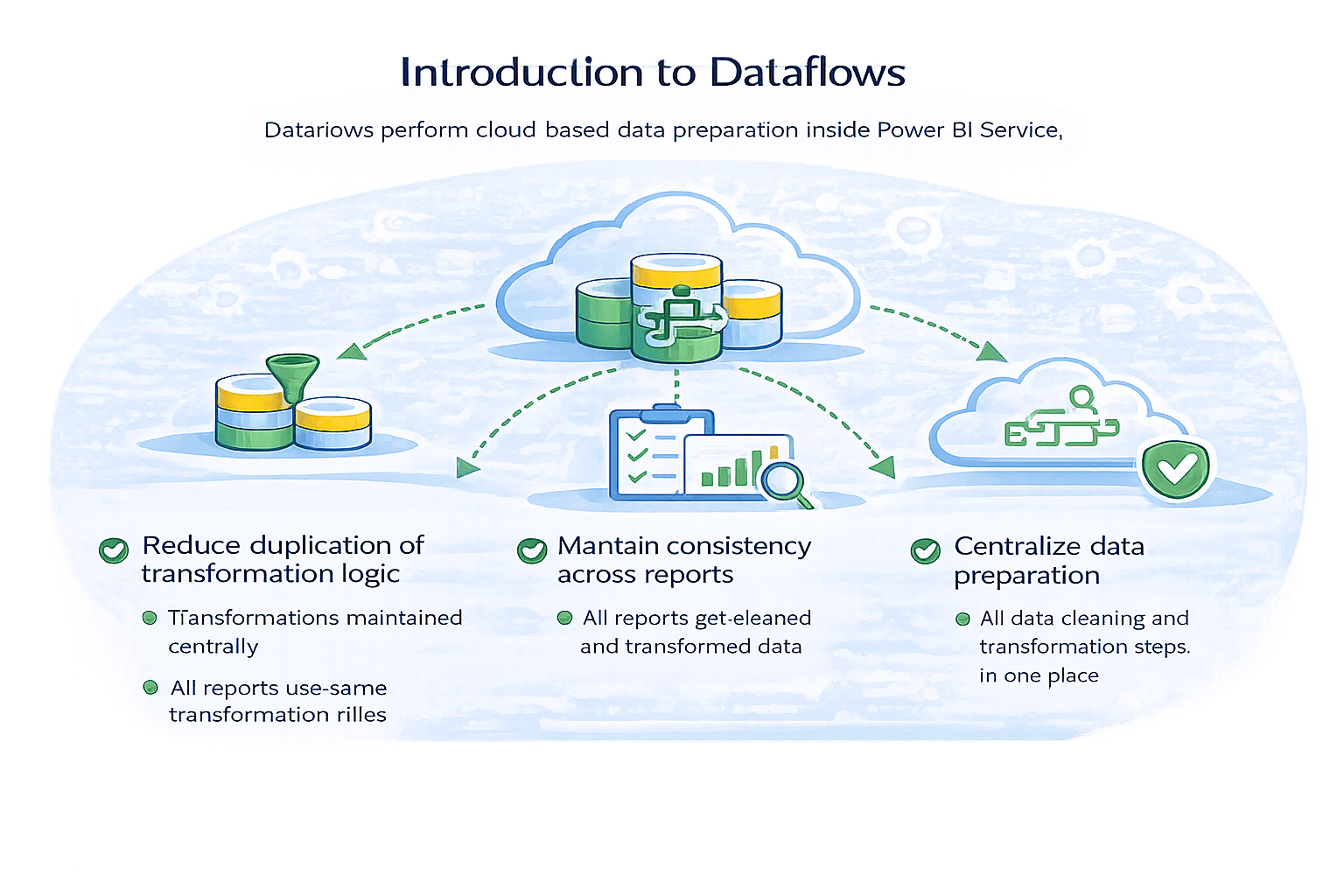 Dataflows perform cloud-based data preparation inside Power BI Service