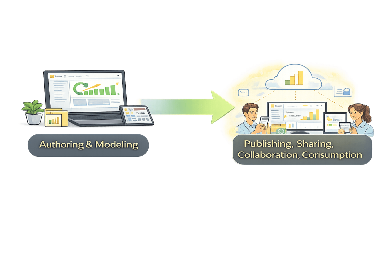 Power BI Service turns personal reports into shared insights.