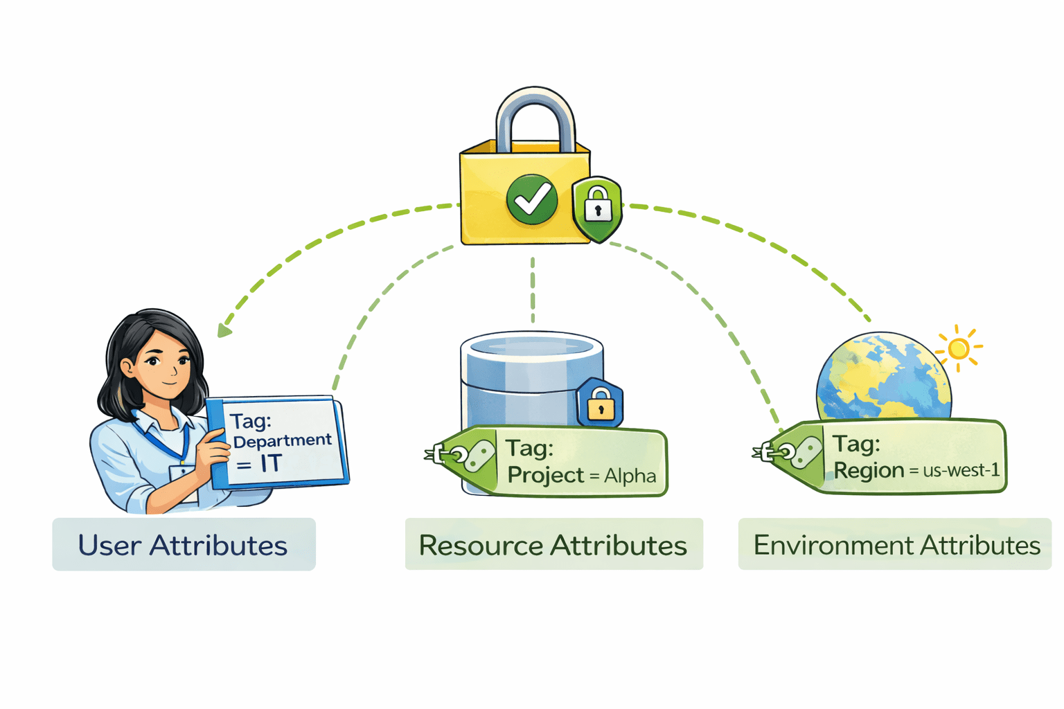 ABAC is an access control model where permissions are decided using attributes (tags) instead of fixed roles.