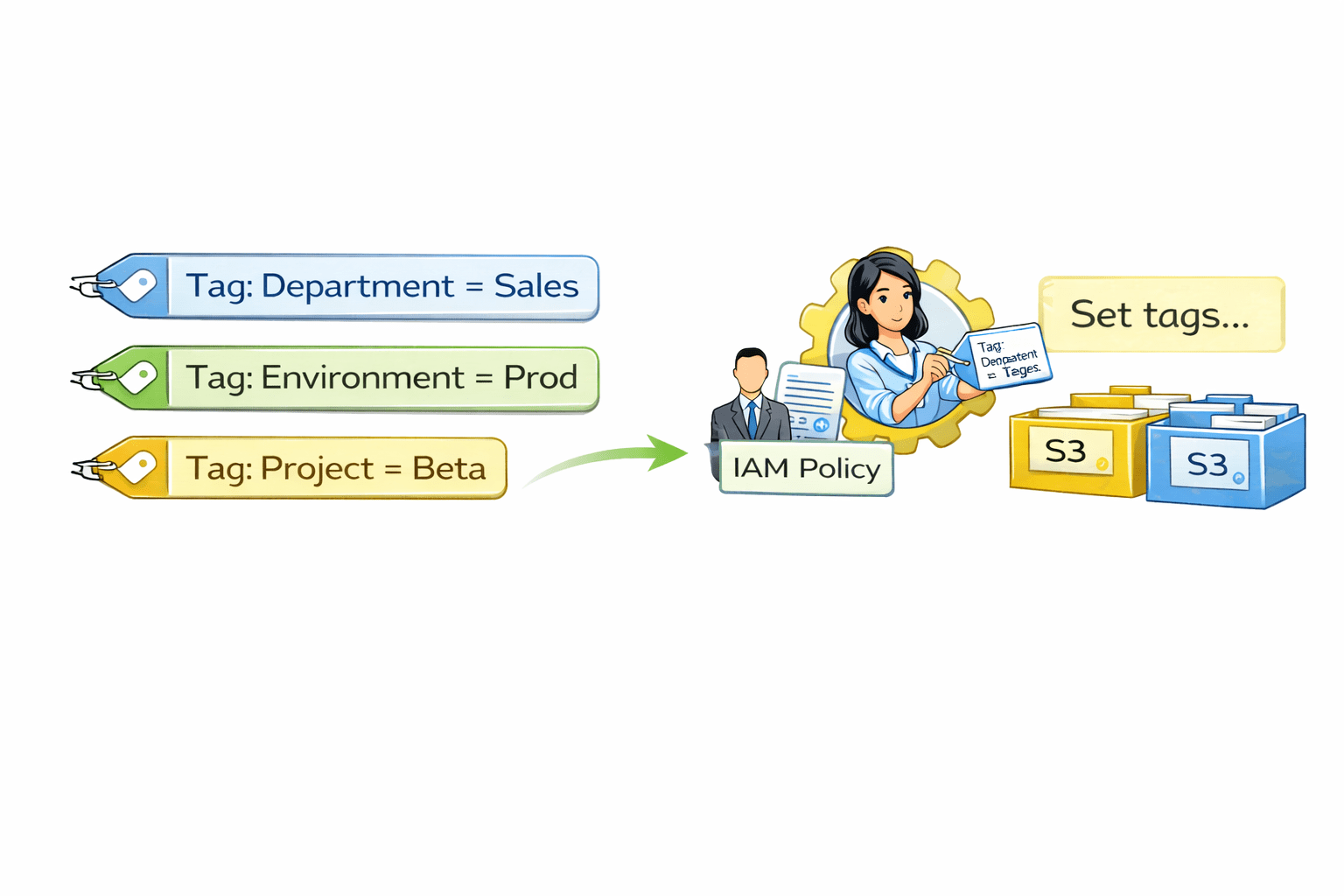 You define tags (attributes) for IAM users, roles, and AWS resources
