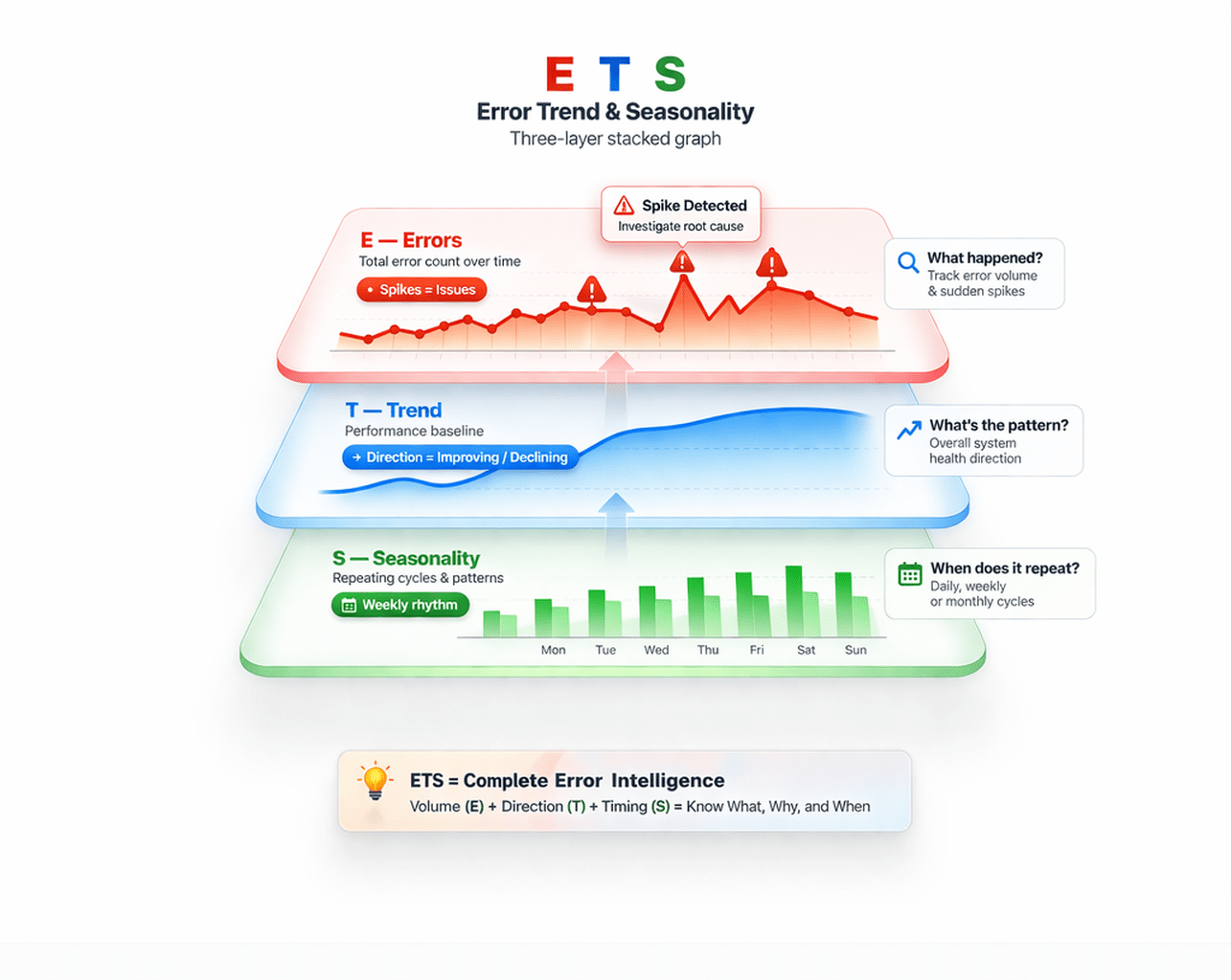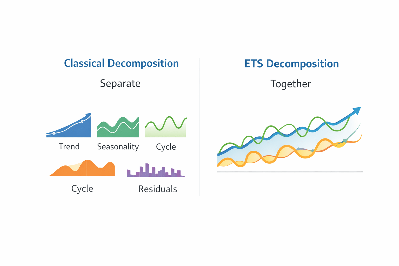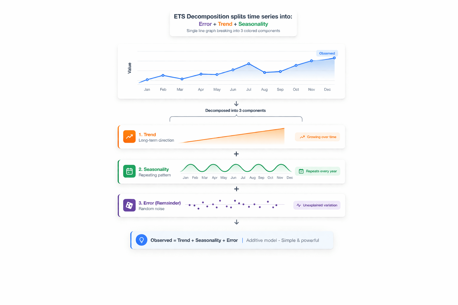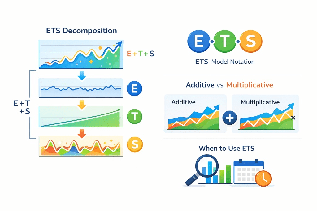 ETS splits time series into Error, Trend, Seasonality