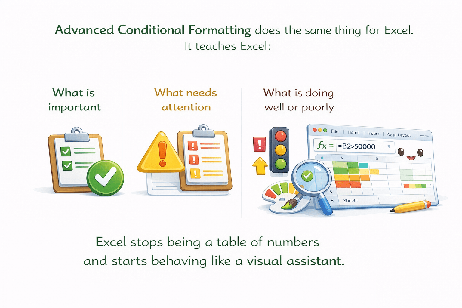 Advanced Conditional Formatting uses formulas and visuals