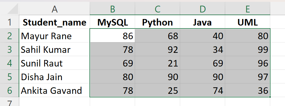 Select the data range