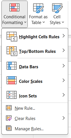 Basic Conditional Formatting rules: