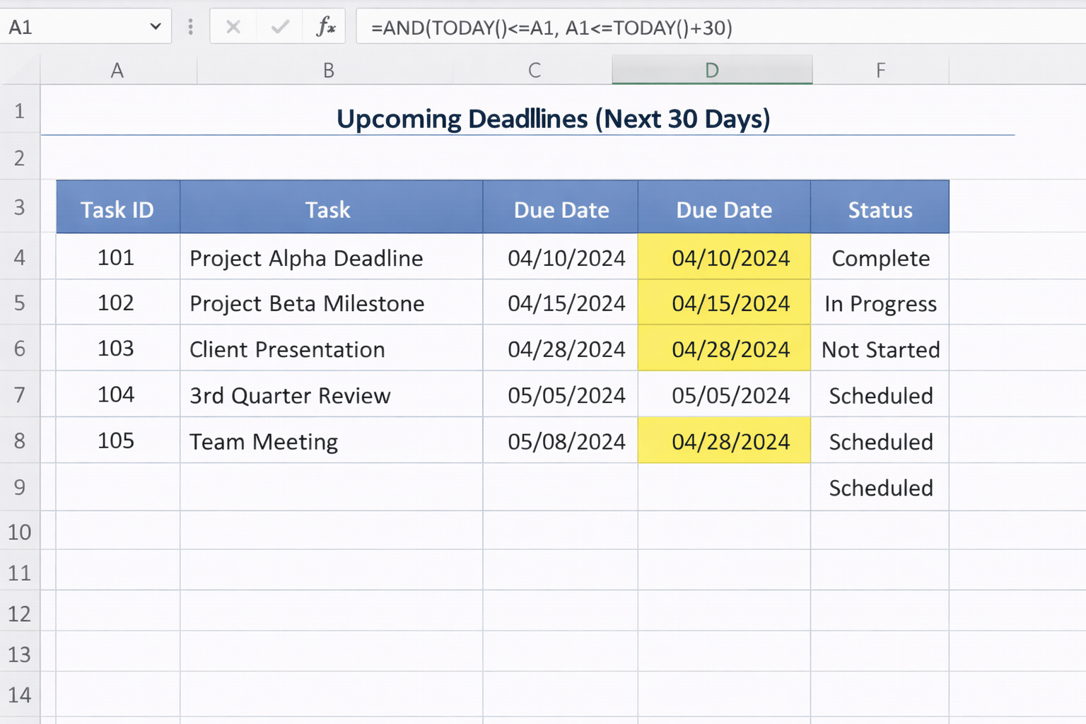Practical Scenario 2: Highlight Upcoming Deadlines (Next 30 Days)