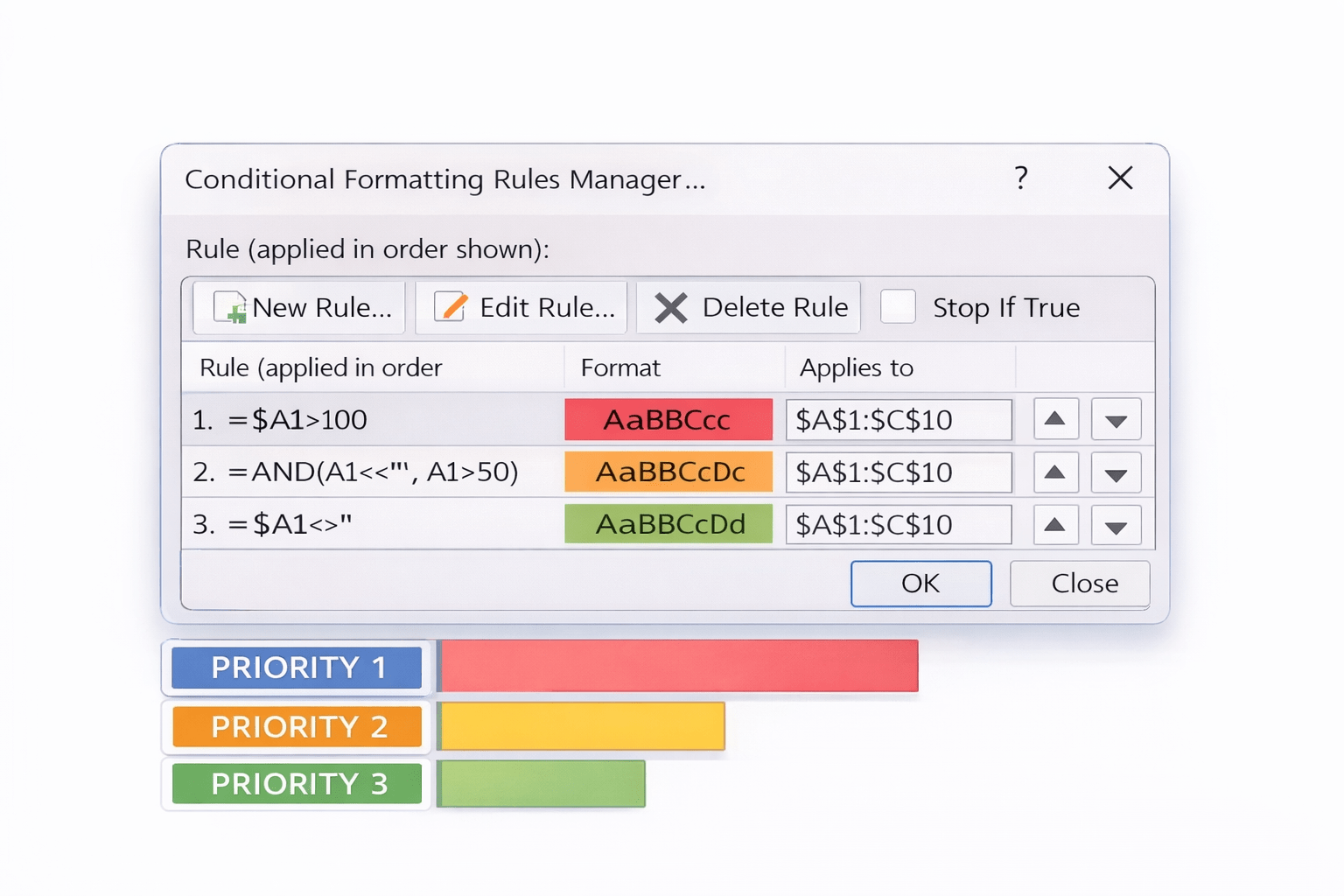Excel allows multiple rules on the same data