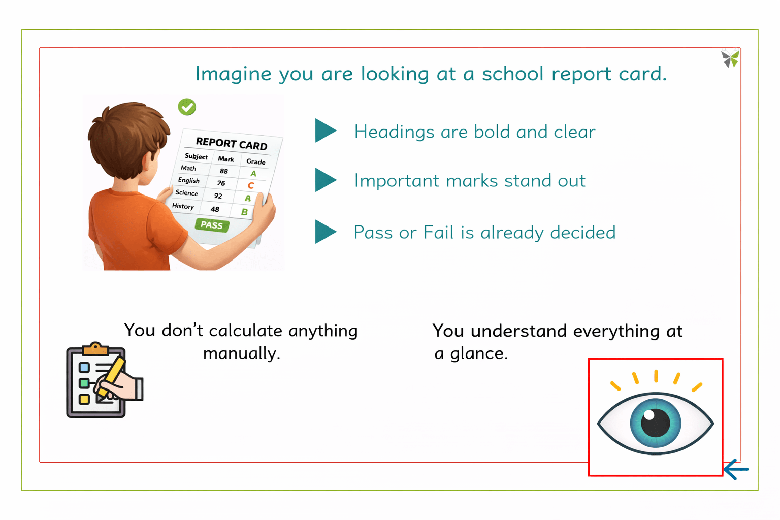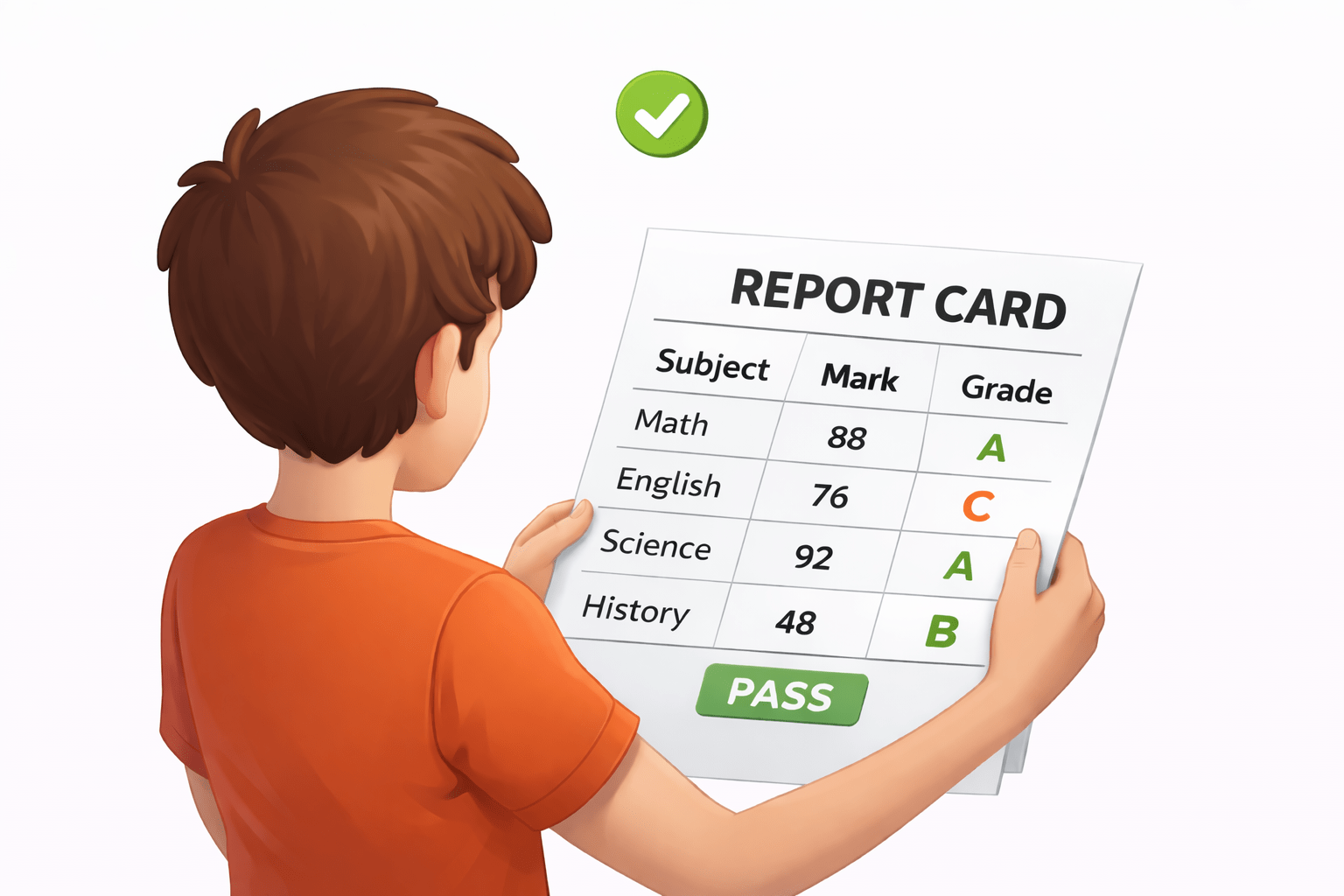 Imagine you are looking at a school report card.