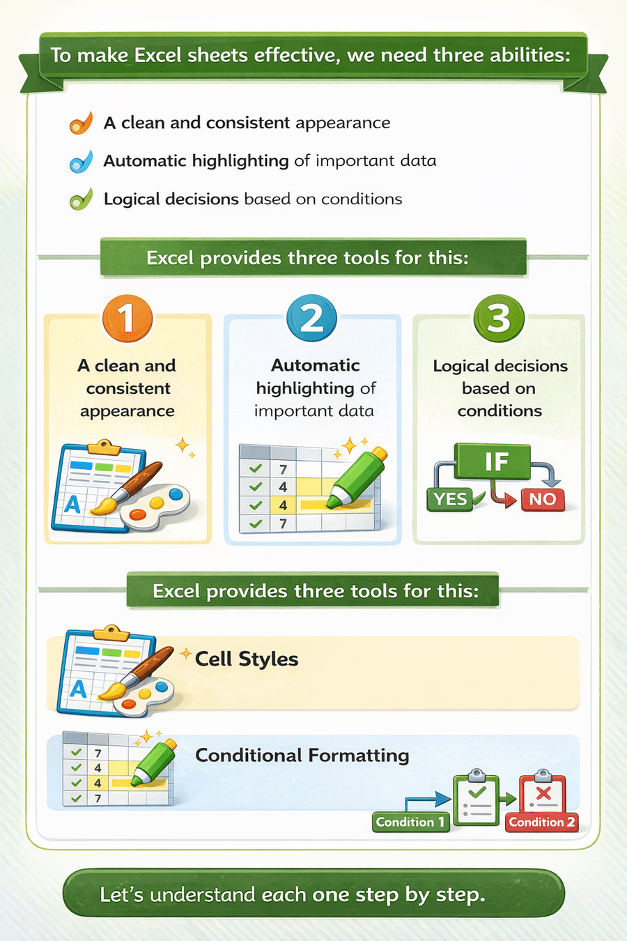 To make Excel sheets effective, we need three abilities: