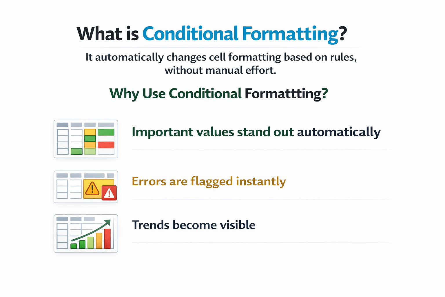 Explain Conditional Formatting and why it is used
