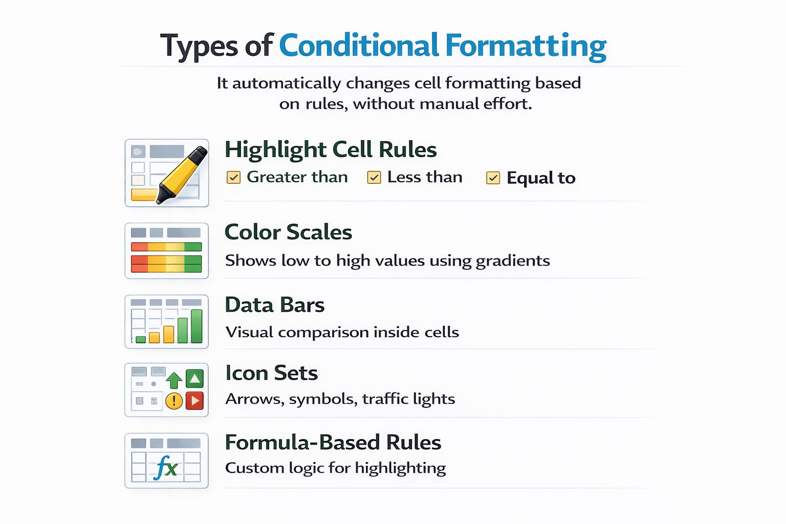 Types of Conditional Formatting