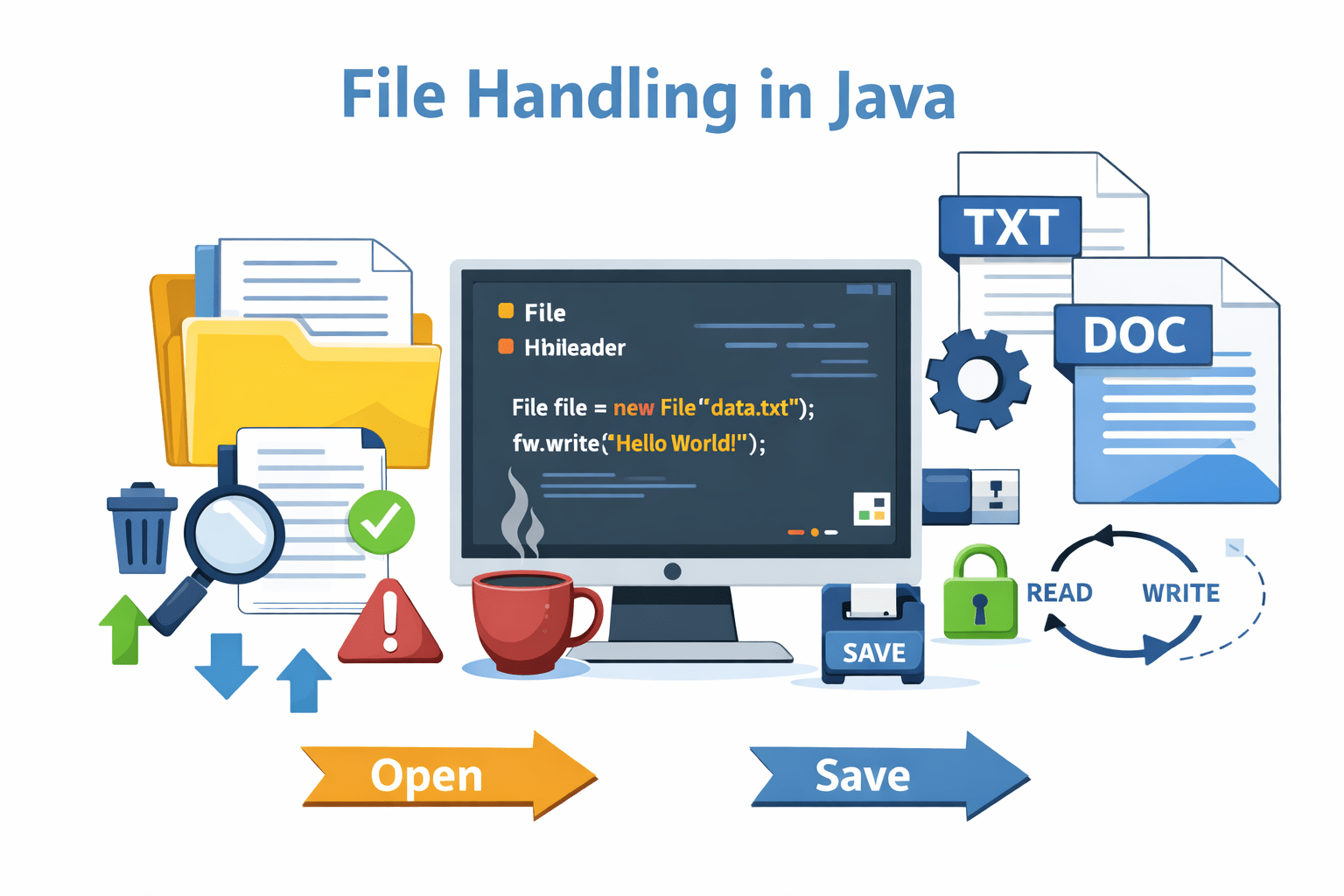Just like we transfer important whiteboard notes to a notebook before wiping the board clean, Java needs a mechanism to transfer data from volatile RAM to permanent storage on your hard drive