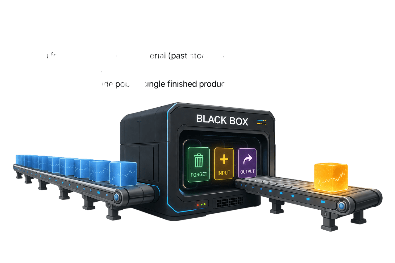 Inside the "Black Box," the Forget, Input, and Output gates process the patterns.