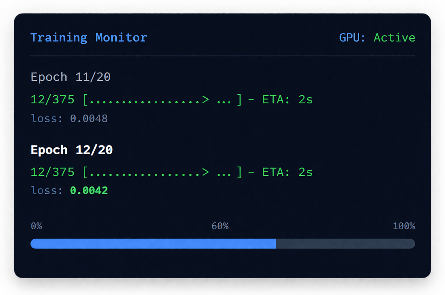 # Epochs: Model reads dataset 20 times