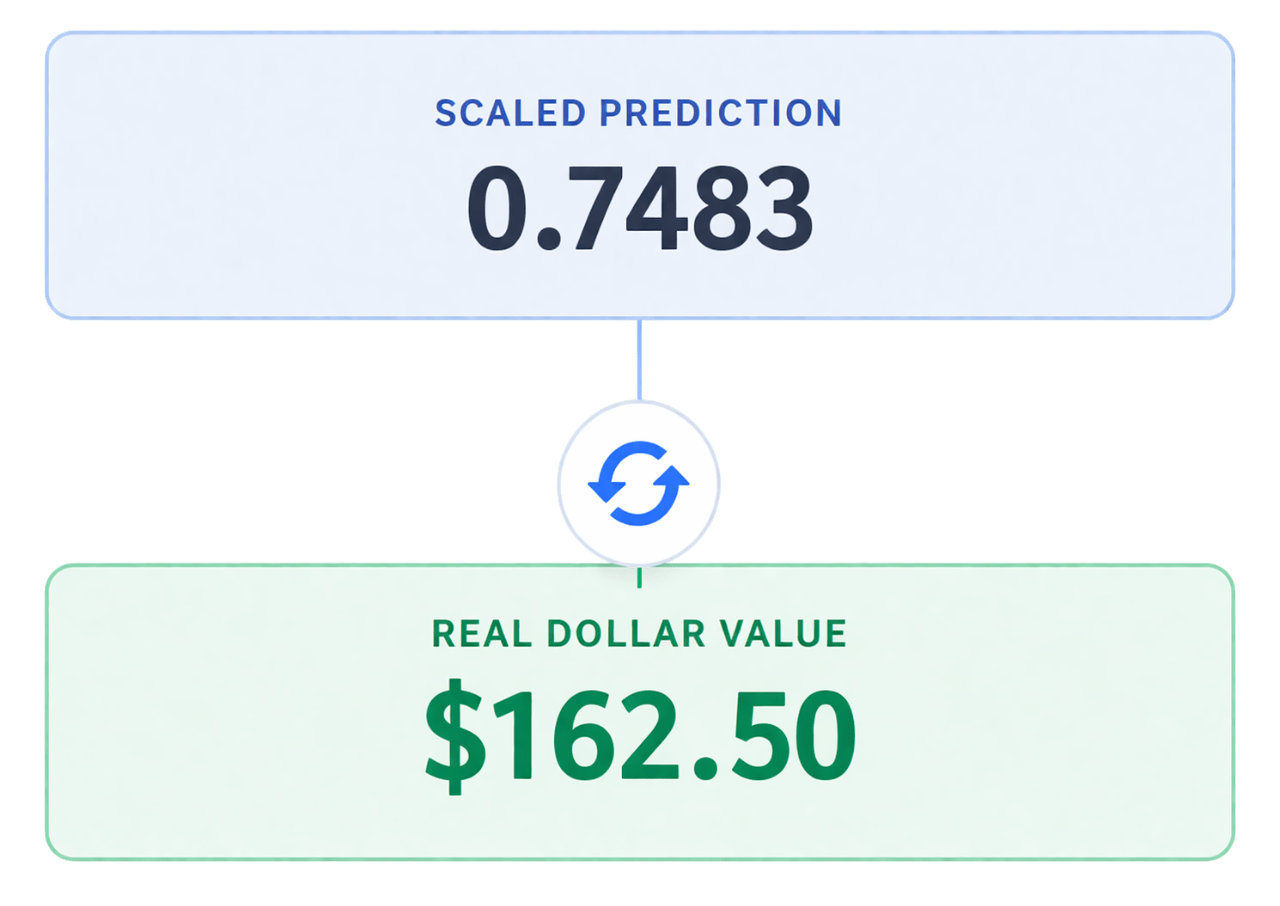 Reverse the scaling to interpret predictions in real dollar values