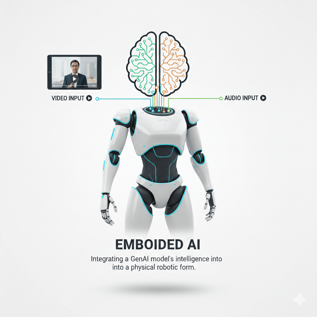 Taking the brain of a GenAI model🧠and putting it into a robot body🤖 (e.g., Tesla Optimus).