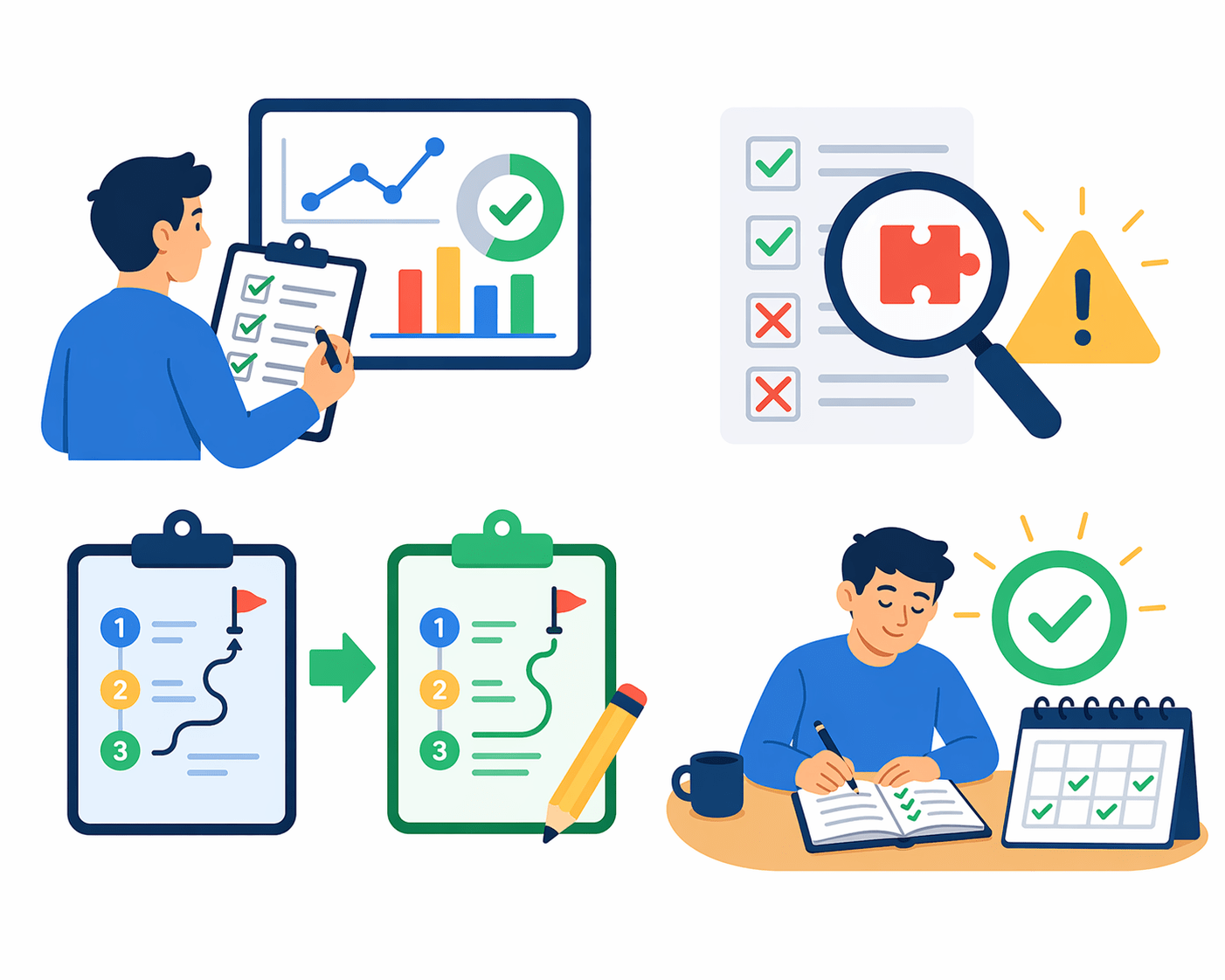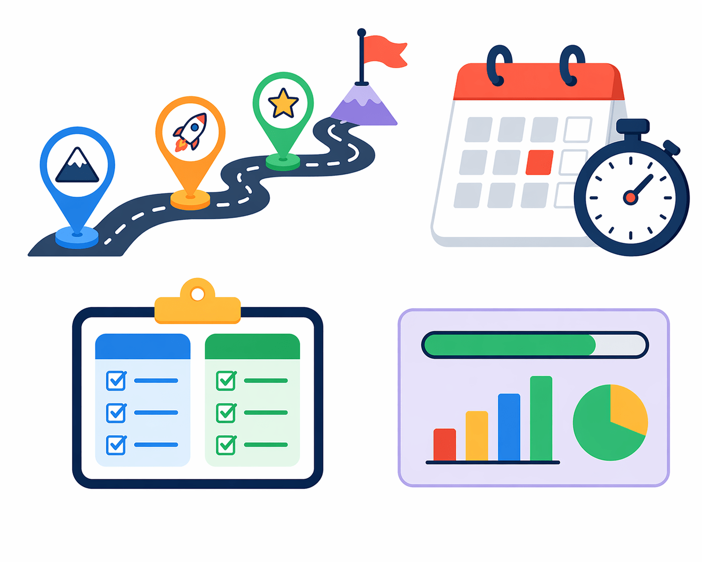 Shows steps, timelines, and milestones