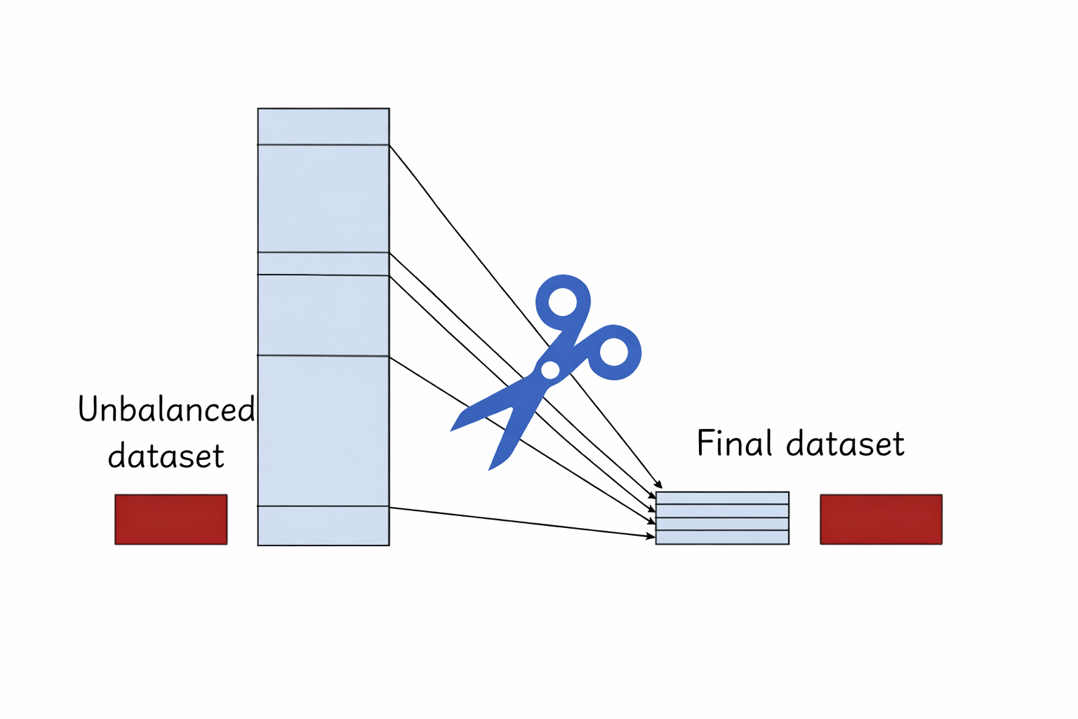 Randomly delete rows from the Majority Class until it matches the size of the Minority Class .