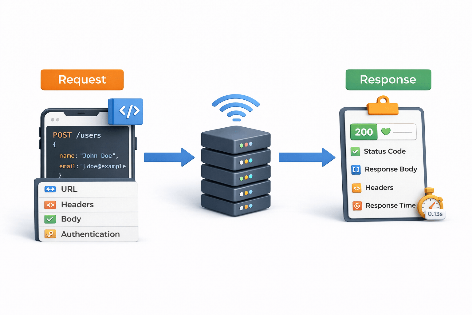 A Request is a message sent from the client (application, browser, or system) to a server API to perform an operation or retrieve data
