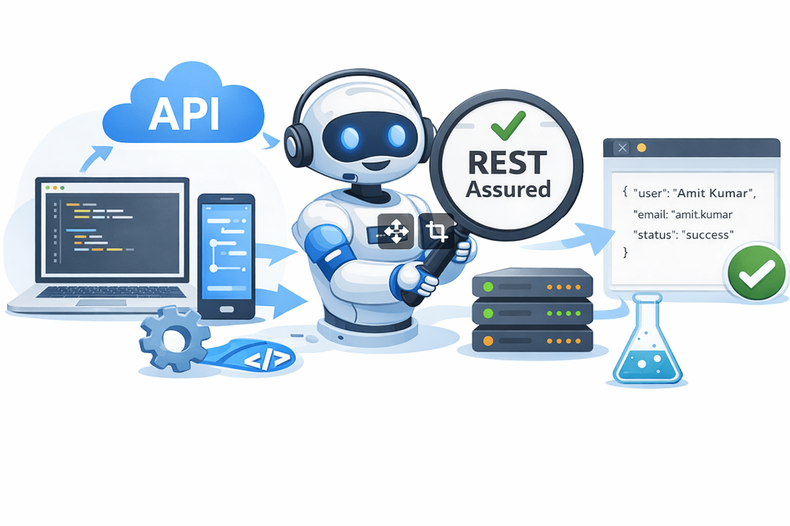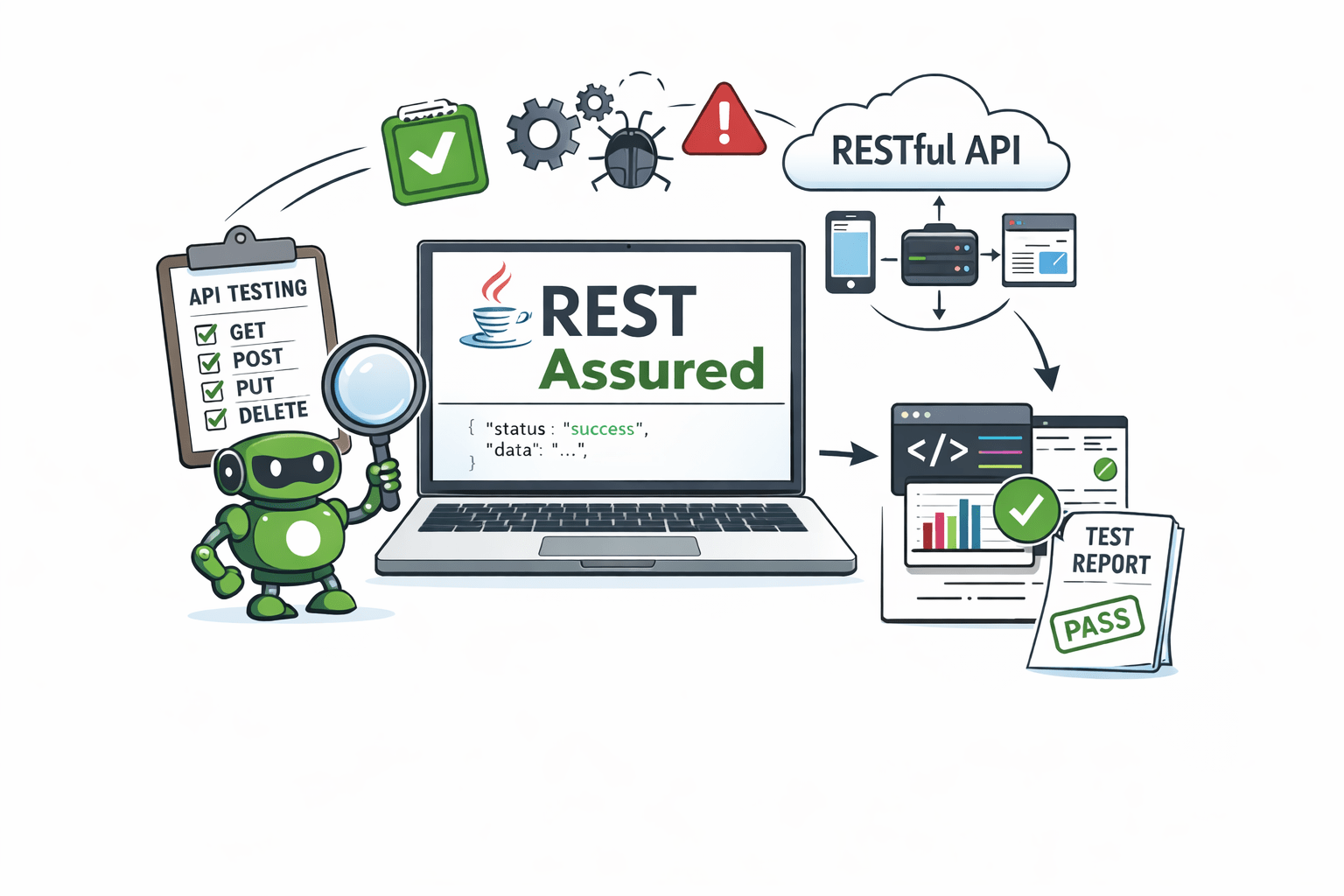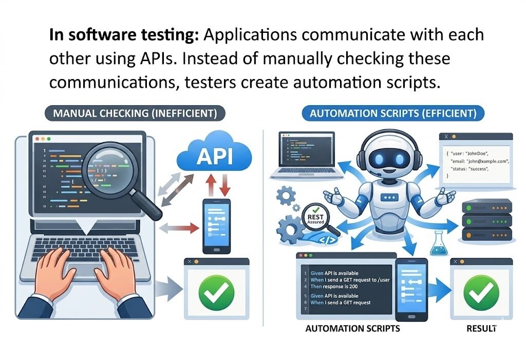 Rest Assured works like the automation assistant — it automatically sends API requests, checks responses, and ensures everything works as expected