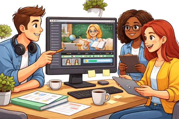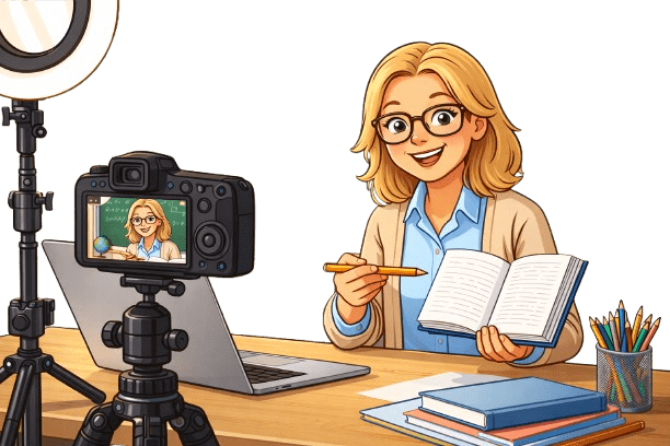 A teacher records a video