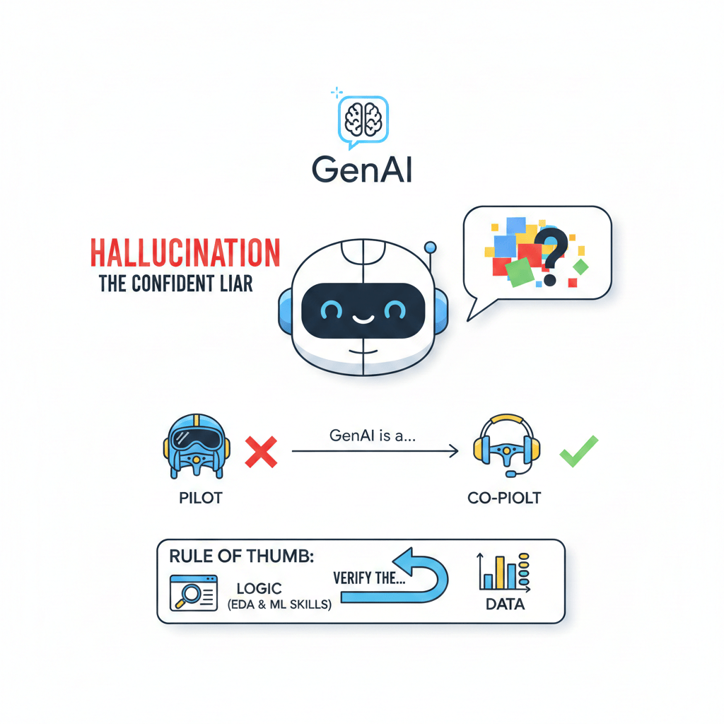 The "Confident Liar": Because GenAI is a probability engine, it can sometimes generate facts that sound perfectly true but are completely made up.
