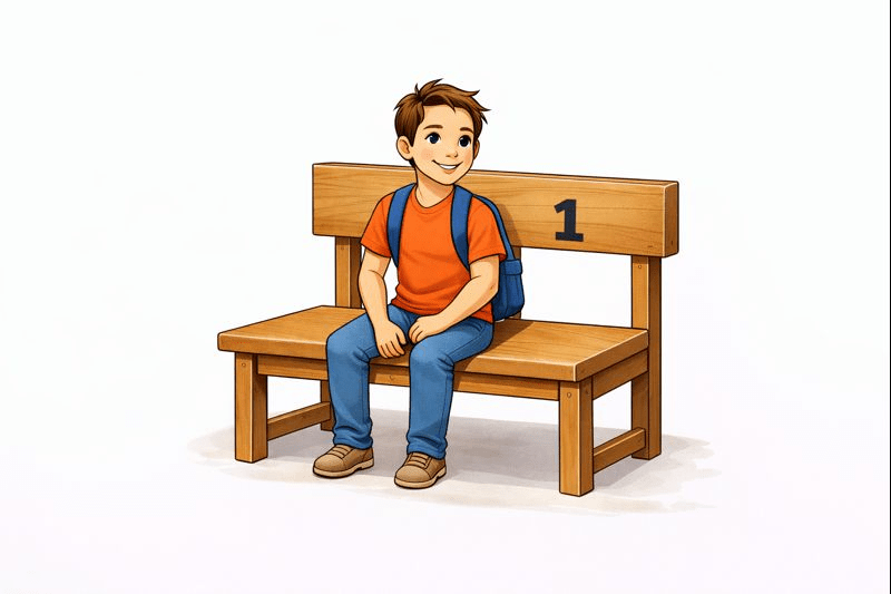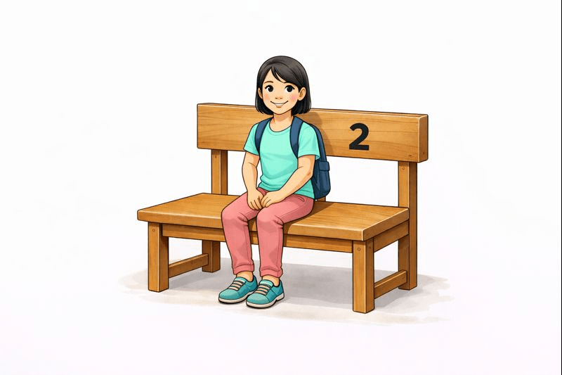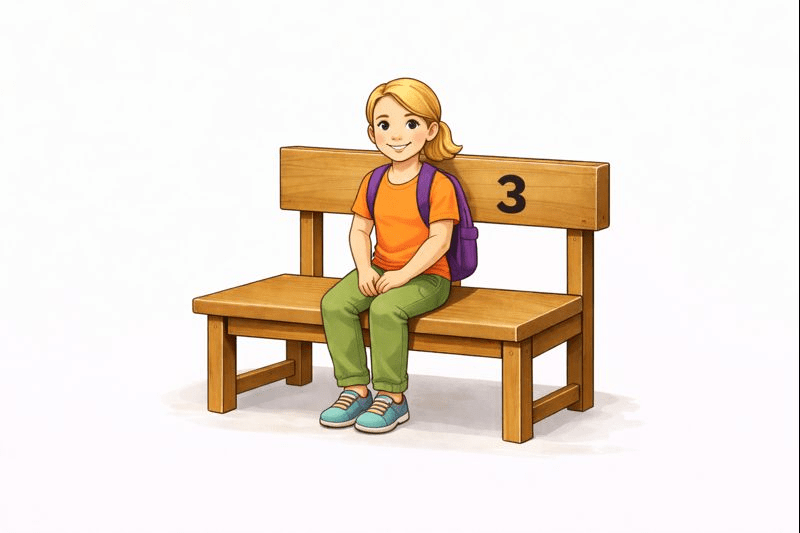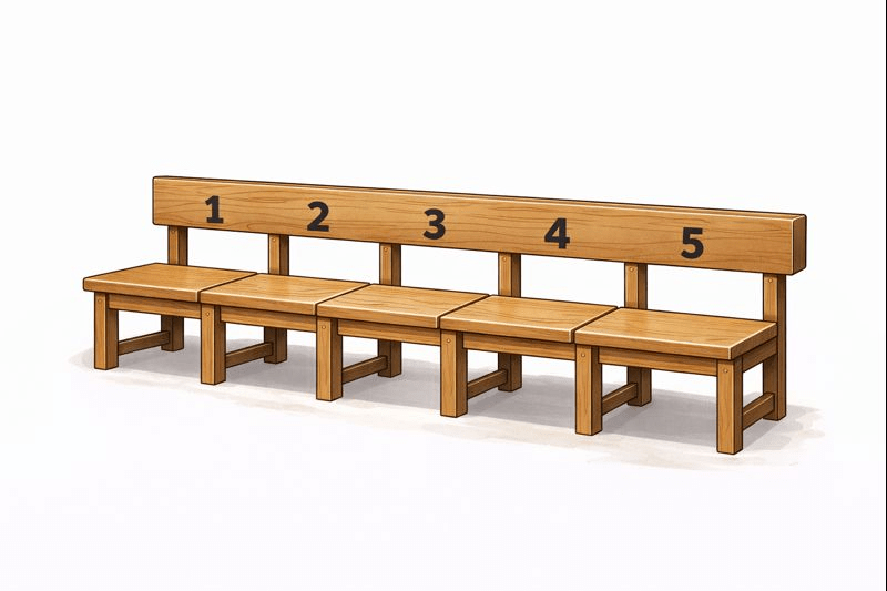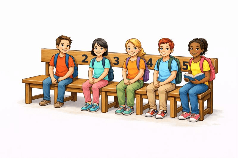 Imagine a long bench in a classroom with 5 fixed seats.