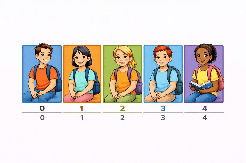 Instead of naming each student separately, we say: “This bench will hold 5 students.”