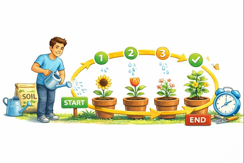 and keep doing it until all plants are watered.