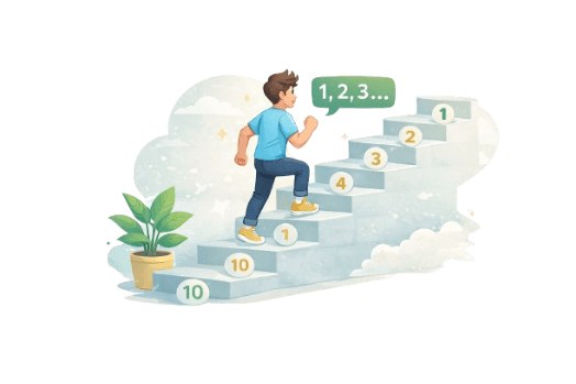 Imagine climbing stairs and counting 10 steps.