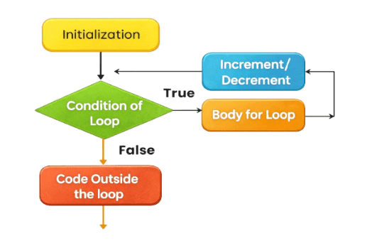 for (initialization; termination condition; increment/decrement){