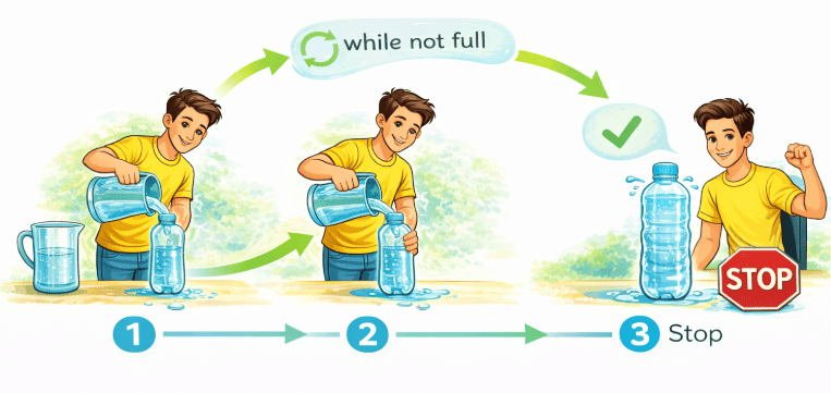 In the same way, a while loop keeps running until the condition becomes false.