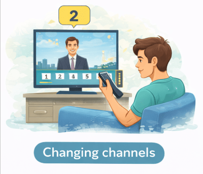 You switch channels one by one to find your favorite show.