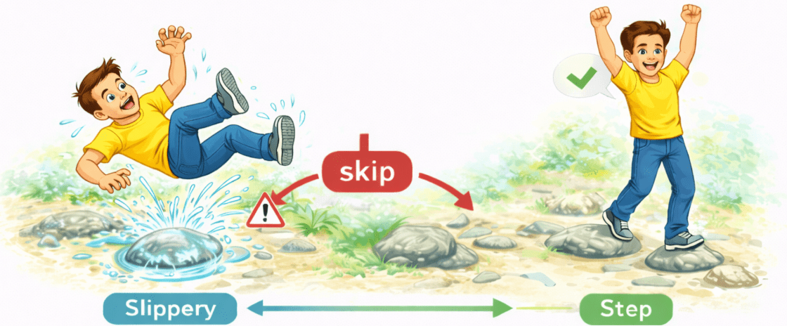 You skip the slippery stones and continue walking on the safe ones.