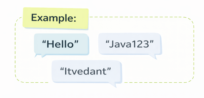 In Java, a String can store a sequence of characters enclosed by double quotes, and every character is stored in 16 bits.