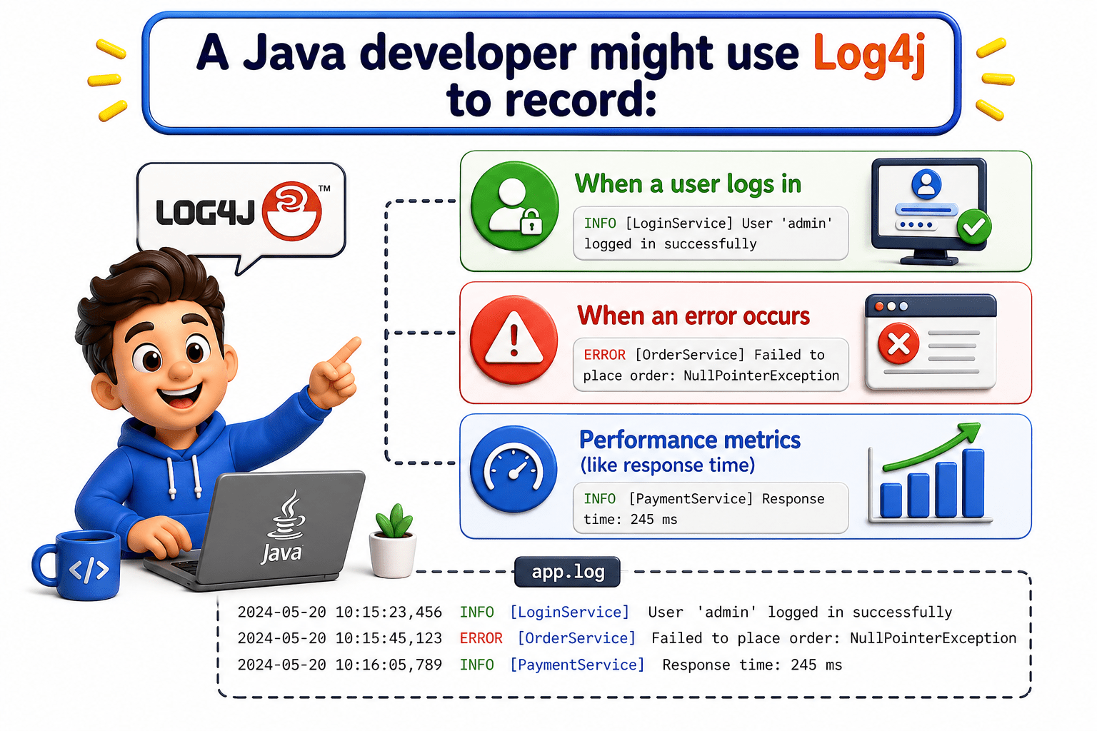 It helps Java applications record information about what they’re doing—especially useful for debugging, monitoring, and auditing.