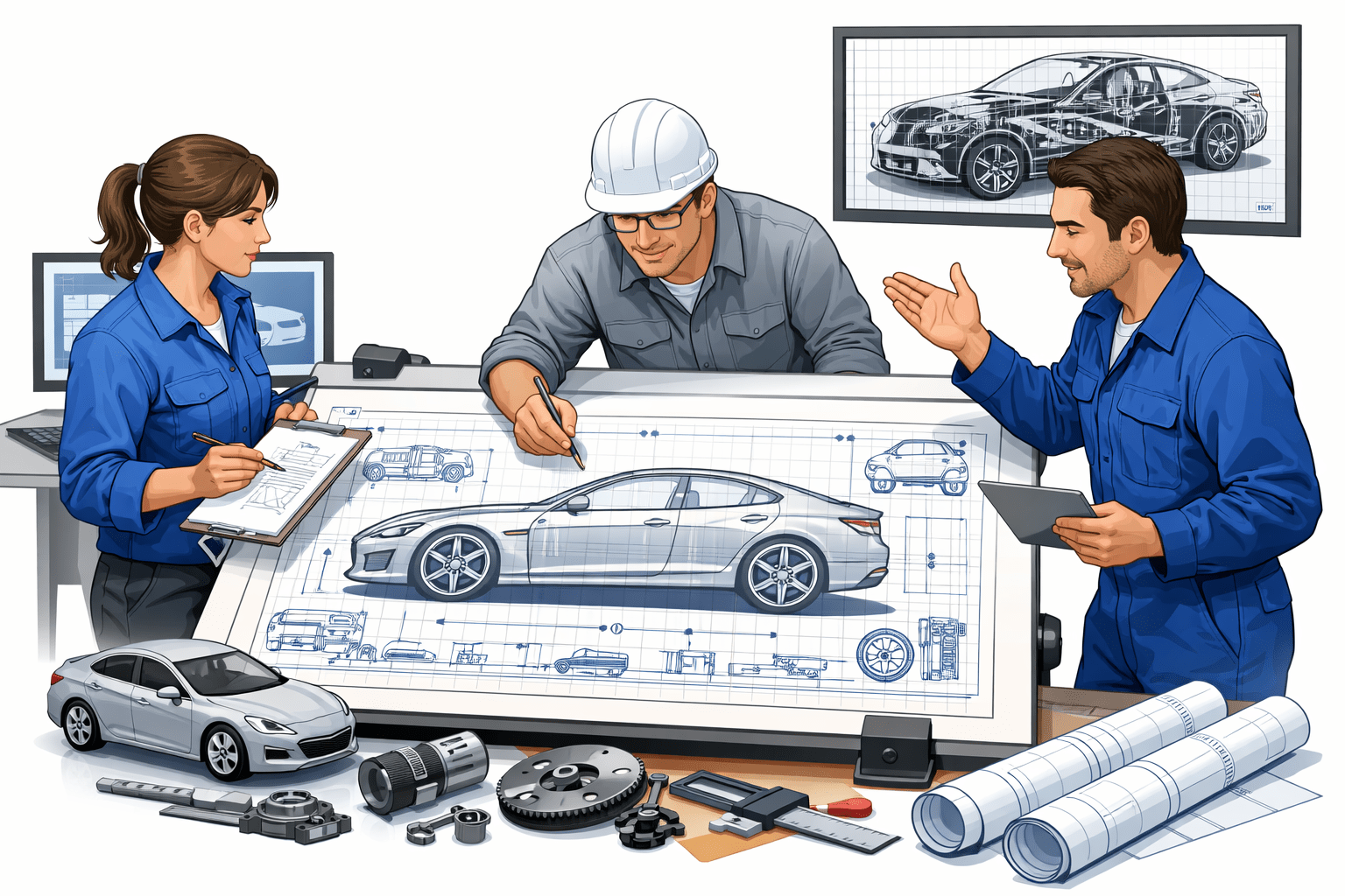 Imagine a car manufacturing company where engineers create a design blueprint.