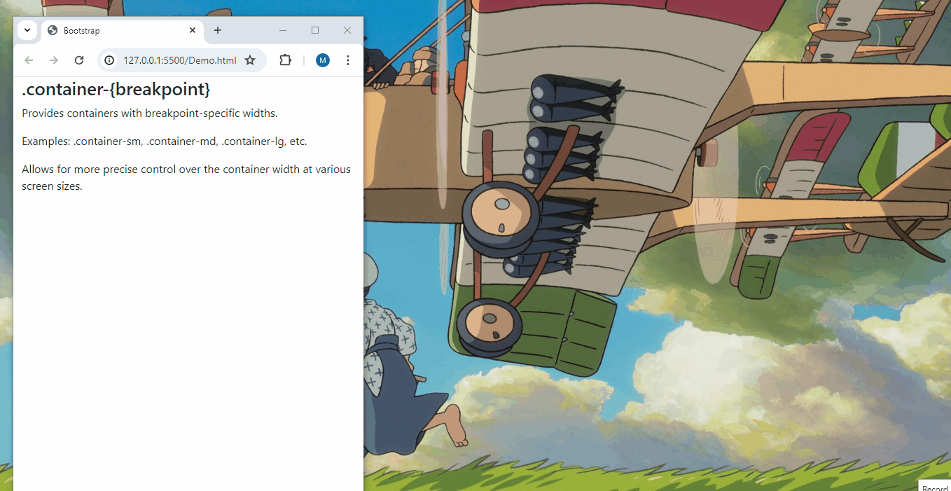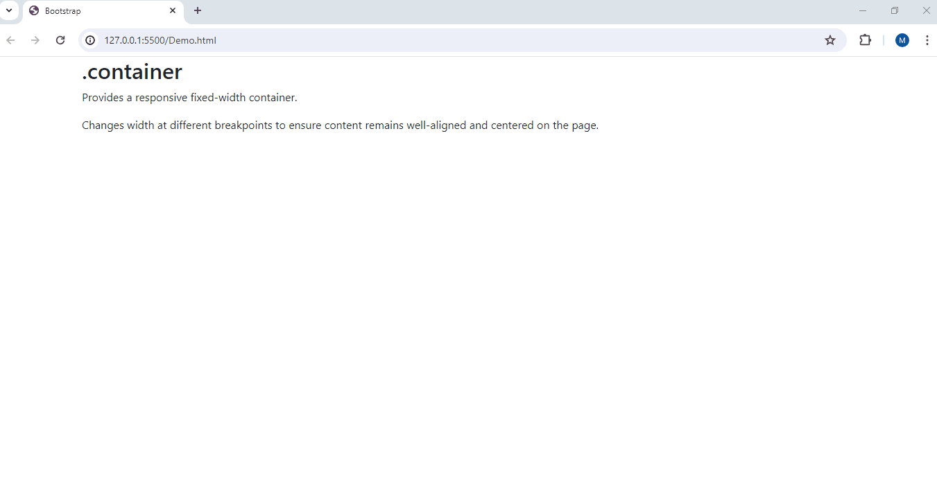 When the browser window is resized, the .container changes its width to adapt to the new screen size
