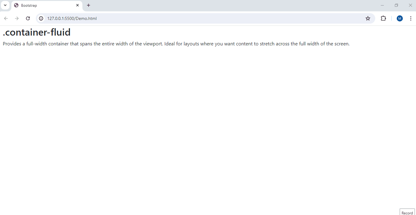 As the browser window is resized, the .container-fluid continues to span the full width of the window, adjusting its content accordingly