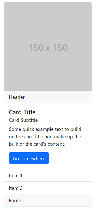 <img src="https://via.placeholder.com/150" class="card-img-top" alt="Card image">