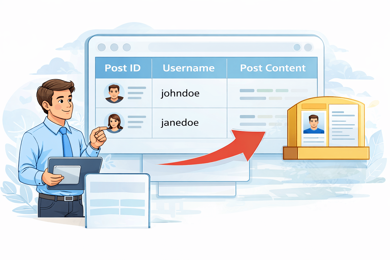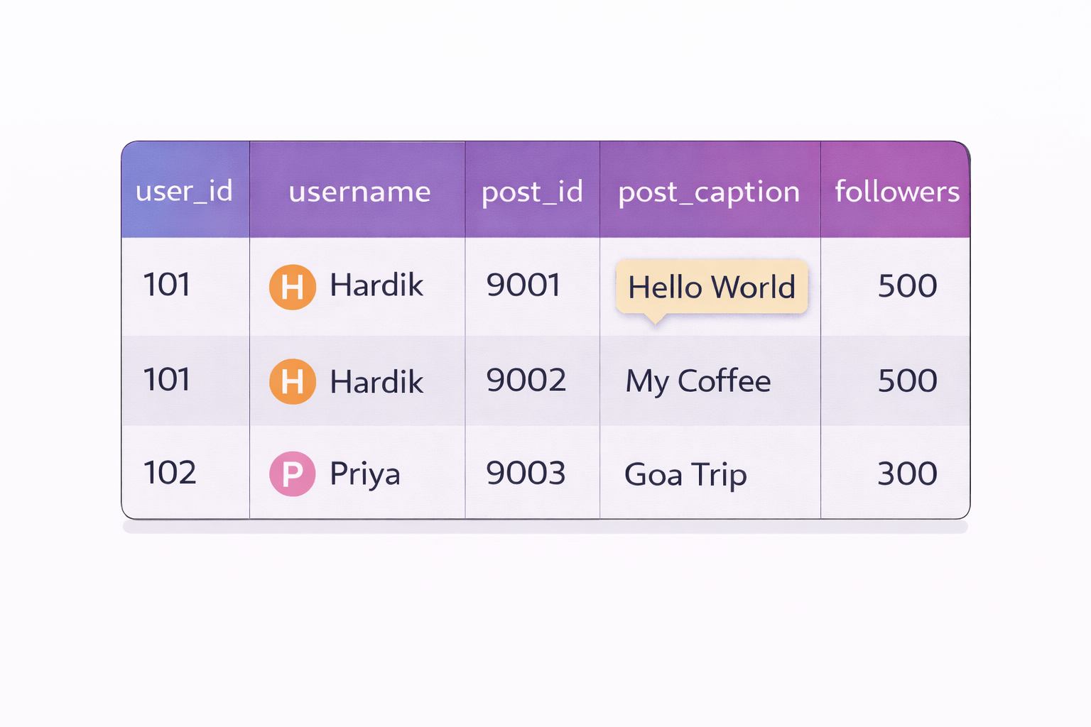 | user_id | post_id | username |